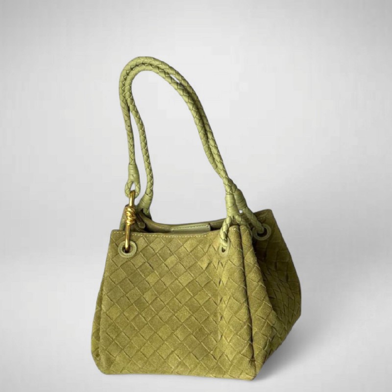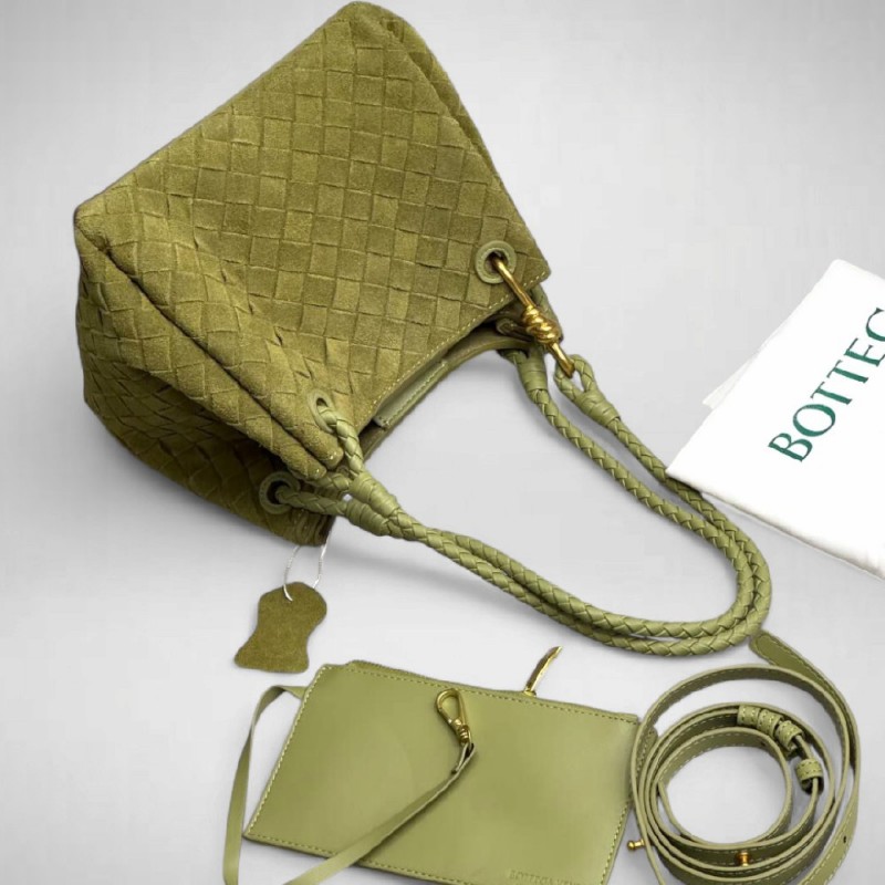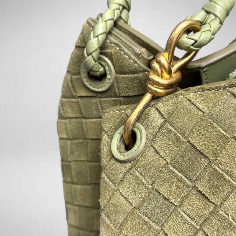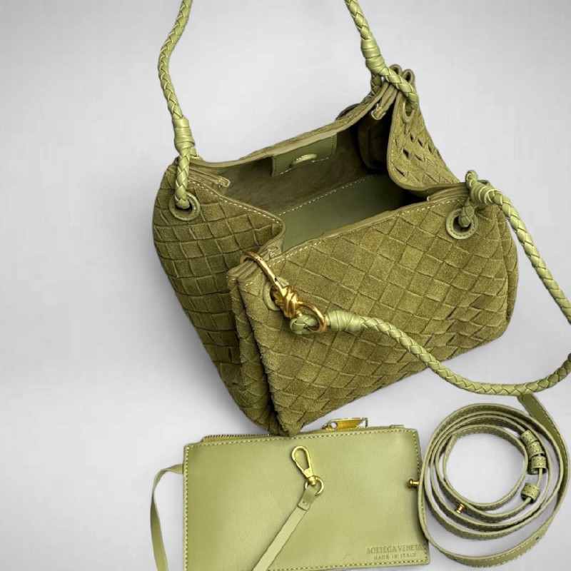 Маленькая сумка на плечо из замши с фирменным плетеным узором intrecciato, плетеной ручкой сверху, регулируемым плечевым ремнем и магнитной застежкой
