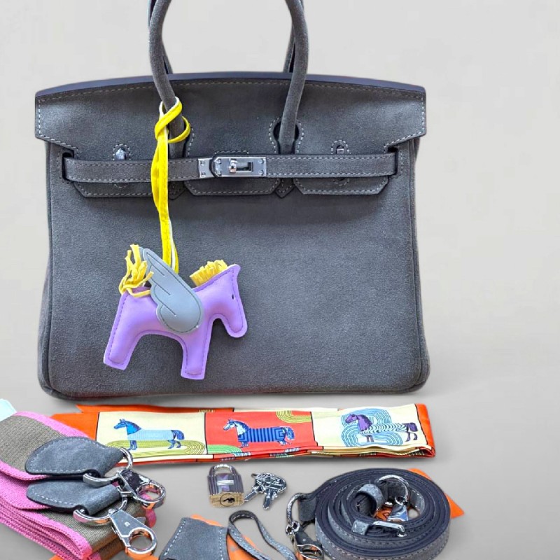 Сумка 25 Suede в стиле Hermès Birkin с шармом Пегас