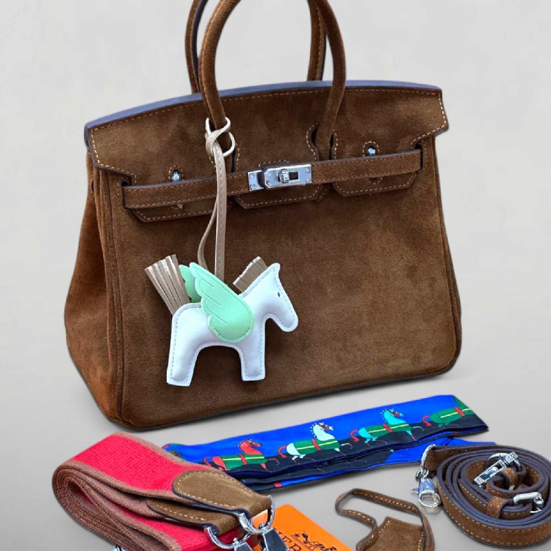 Сумка 25 Suede в стиле Hermès Birkin с шармом Пегас