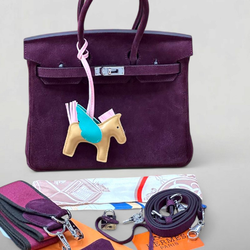 Сумка 25 Suede в стиле Hermès Birkin с шармом Пегас