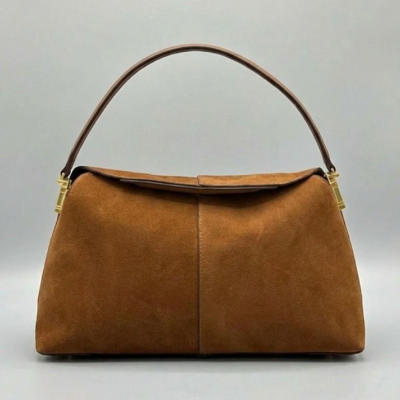 Характеристика Детали Модель T Case Bauletto Бренд Tod's (Италия) Материал 100% натуральная замша Цвет Табачный (Tobacco) Фурнитура Золотистая Размер 34х19 см Стиль Баулетто (Bauletto), с верхней ручкой Особенности Мягкая, но держит форму; идеальна для стиля "тихая роскошь"