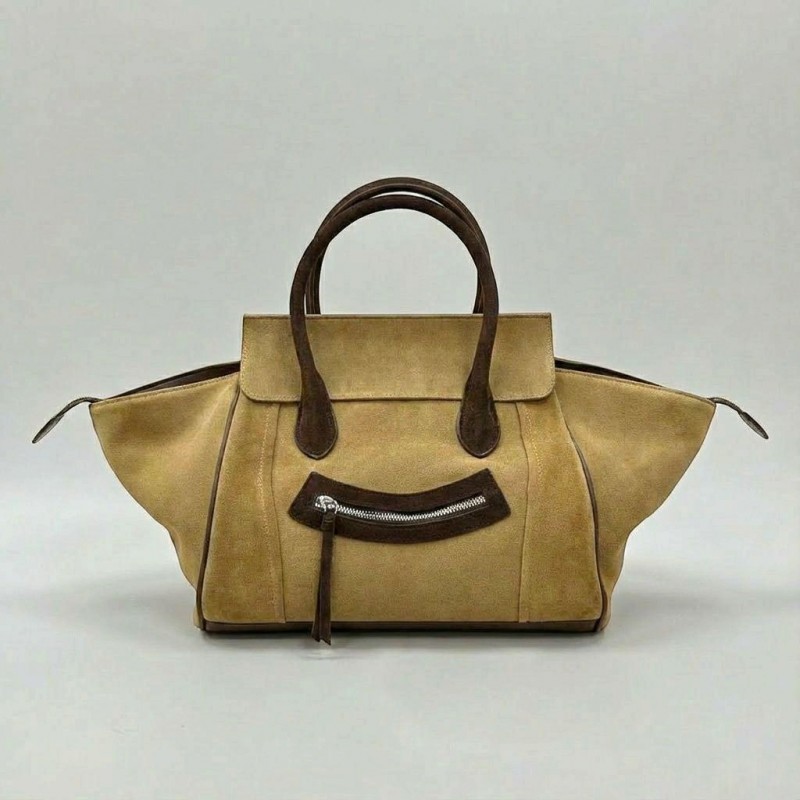 Celine Luggage в роскошной натуральной замше — это воплощение вневременной классики и безупречного вкуса. Эта сумка-тоут, известная своими характерными "крыльями" (расширяющимися боковинами), сочетает в себе архитектурную форму и исключительную мягкость материала. Мягкая замша и элегантная фурнитура делают ее идеальным аксессуаром для создания статусного, но при этом расслабленного образа.